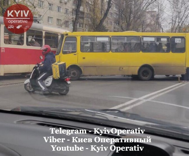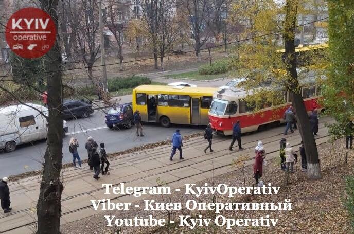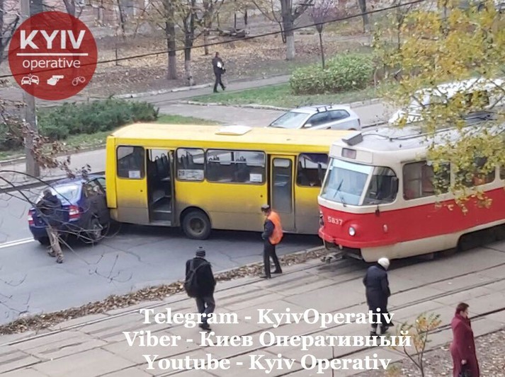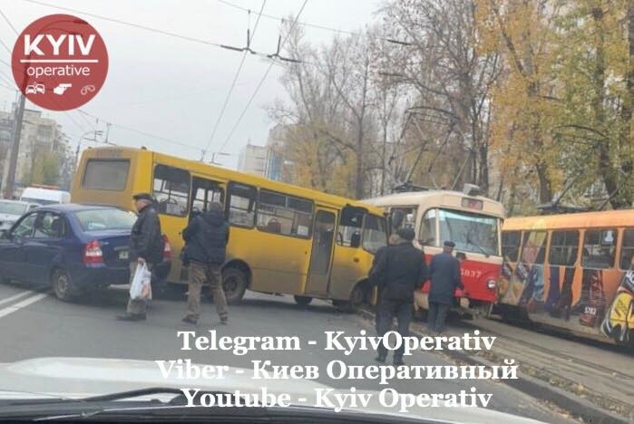 ДТП у Києві: маршрутка паралізувала рух трамваїв (фото)