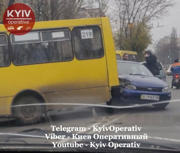 У четвер, 14 листопада, близько 11-ї години на Кирилівській у Києві сталася ДТП за участі трамвая, маршрутки і легкового автомобіля.