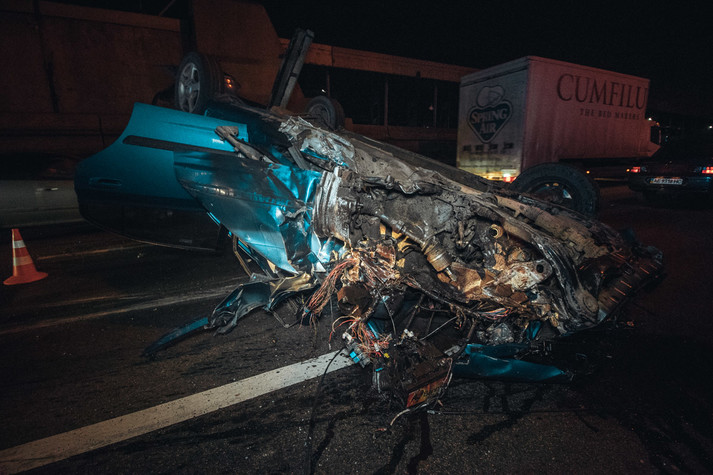Після зіткнення легковушку протягло далі по проїжджій частині і вона перекинулася
