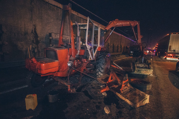 У ніч на середу, 31 жовтня, в Києві на Південному мосту сталася ДТП з постраждалими: автомобіль Hyundai Elantra врізався в трактор комунальників, які вели ремонтні роботи.