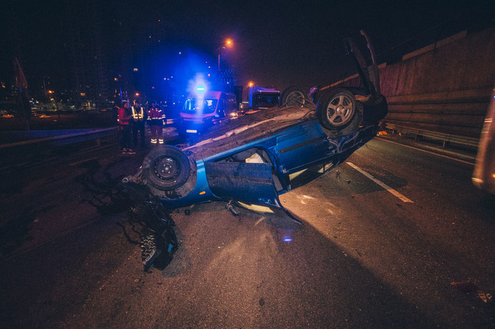 ДТП з постраждалими на Південному мосту: Hyundai врізався у трактор і перекинувся