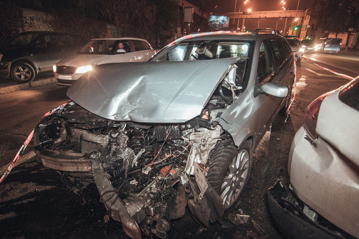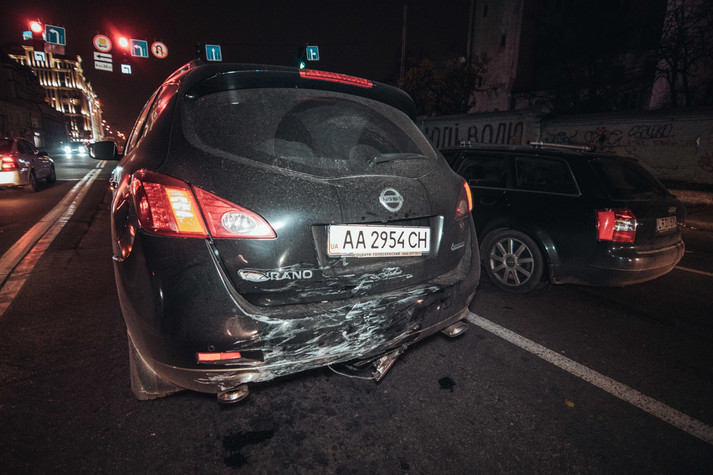 За попередньою інформацією, всі машини їхали в бік вулиці Нижній Вал. У цей момент, на світлофорі перехрестя вулиці Хорива Peugeot врізався в Nissan, і потім в них влетів Renault. В результаті, постраждала жінка-водій Peugeot, але вона не отримала серйозних травм і після огляду лікаря приїхала на місце ДТП.