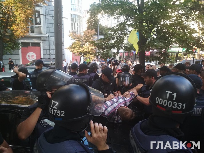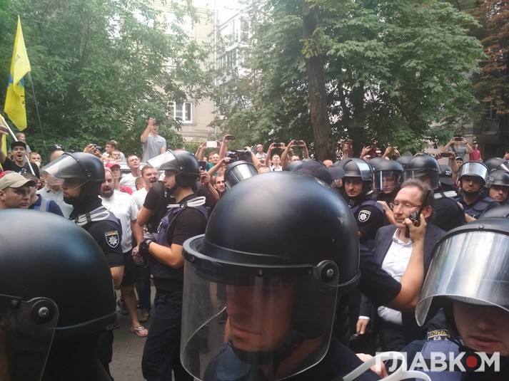 «Євробляхери» вимагають провести «громадське затримання» нардепа. «Слуга народу, выйди до народу», - скандують вони. Також вигукують «поліція з народом».