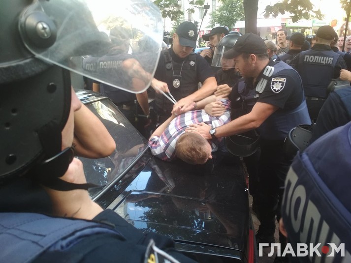Також поліція затримала одного із «євробляхерів», який поводився вкрай агресивно та кидався на людей.