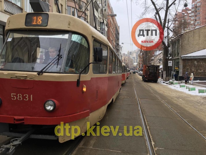 Як повідомляє пресслужба КП «Київпастранс», затримується рух трамваїв №15, 18 по вул. Дмитрівській в напрямку Контрактової площі.