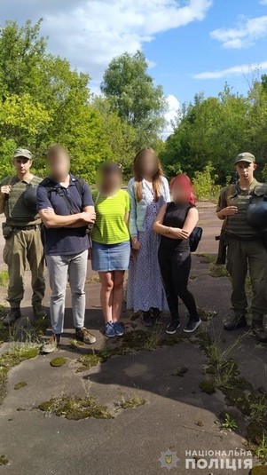 Як повідомляє пресслужба Головного управління Нацполіції в Київській області, першу групу з чотирьох молодих людей було виявлено у відселеному смт Поліське. Всі четверо кияни 21-го, 22-х, 25-ти та 29-ти років.