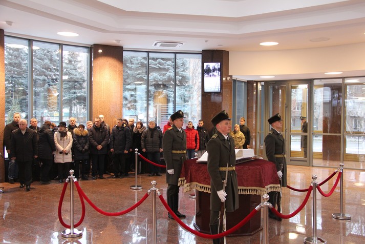 Сьогодні, 24 листопада, на території Міністерства оборони України відбувся щоденний ранковий церемоніал вшанування військовослужбовців Збройних Сил України, які загинули цього дня внаслідок російської збройної агресії на cході України в різні роки.