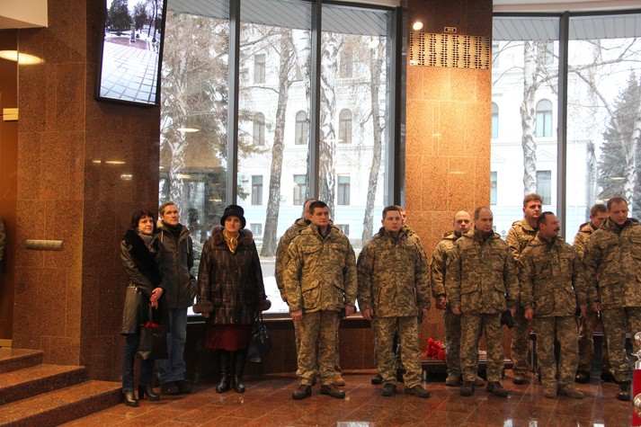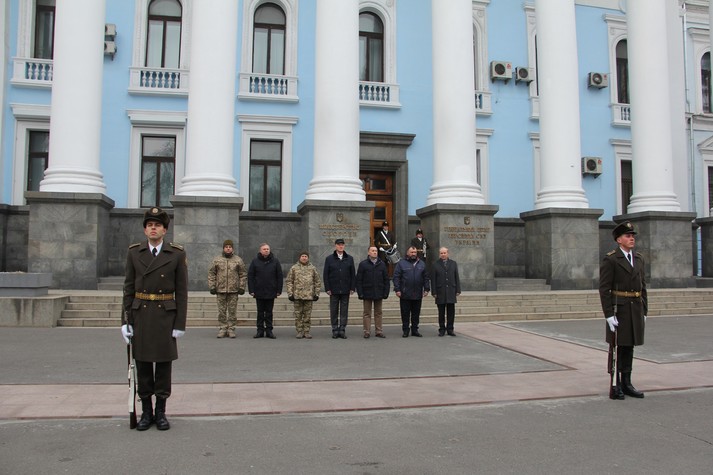 У ранковому церемоніалі взяли участь мати загиблого матроса Сергія Склезь, дружина солдата Віталія Горбатюка, дружина молодшого сержанта Андрія Фігурного, заступники Міністра оборони, представники структурних підрозділів оборонного відомства та Генерального штабу ЗС України, військовослужбовці