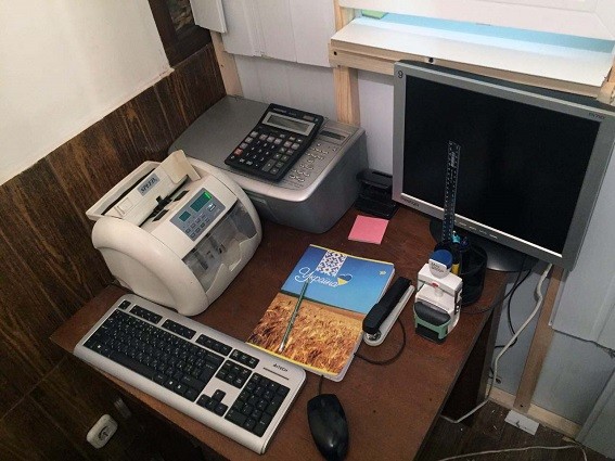 Тож за п'ятнадцять хвилин приміщення харчування перетворилося на пункт обміну валюти: з’явилися вивіски, офісна техніка, касир, гривні у великих купюрах (але подарункові) тощо. Згодом прийшов клієнт, який знайшов оголошення про продаж валюти за вигідним курсом на сайті та домовився про зустріч телефоном.
