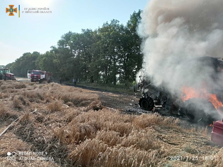 У неділю, 25 липня, на полі під час збирання врожаю пшениці в смт Калита Броварського району сталося загорання комбайна. Інформація про пожежу надійшла до рятувальної служби о 17:45.