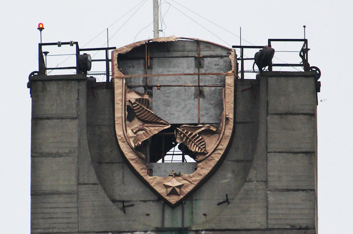 За останні кілька років невідомі розібрали частину гербів, викравши мідні пластини. Той, що видно з правого берега, знищено практично повністю.