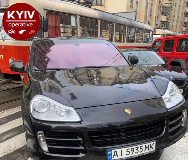 «Герой парковки» на Porsche заблокував рух трамваїв у Києві (фото)