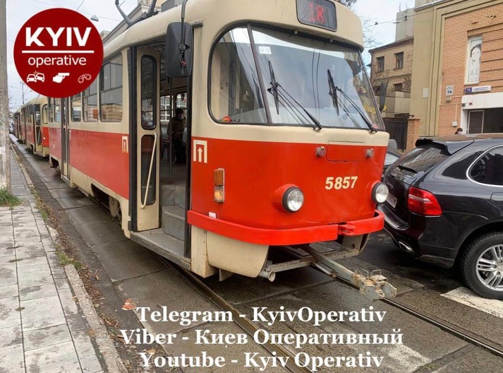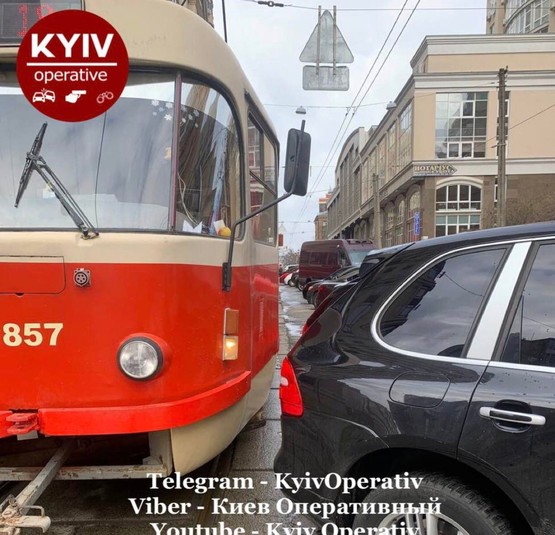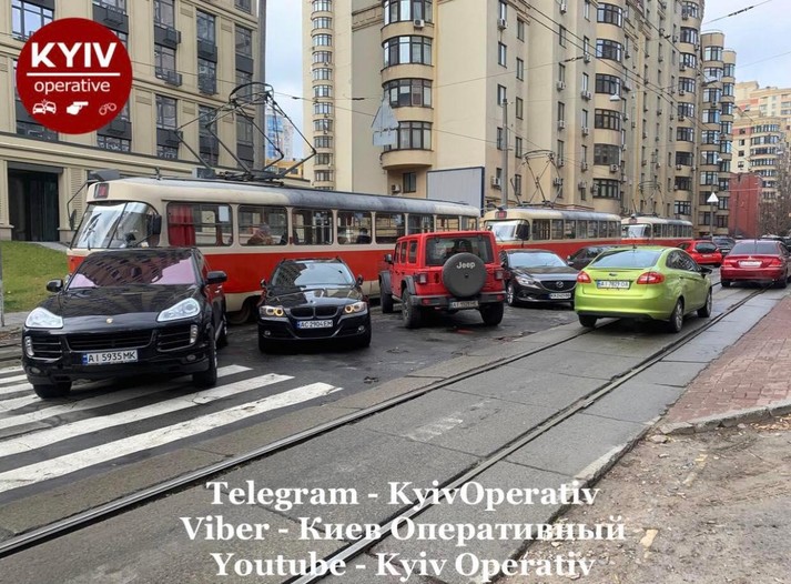 У середу, 24 листопада, на вул. Дмитрівській, 76 у Києві водій автомобіля Porsche заблокував рух трамваїв. Про це повідомляє «Київ оперативний».