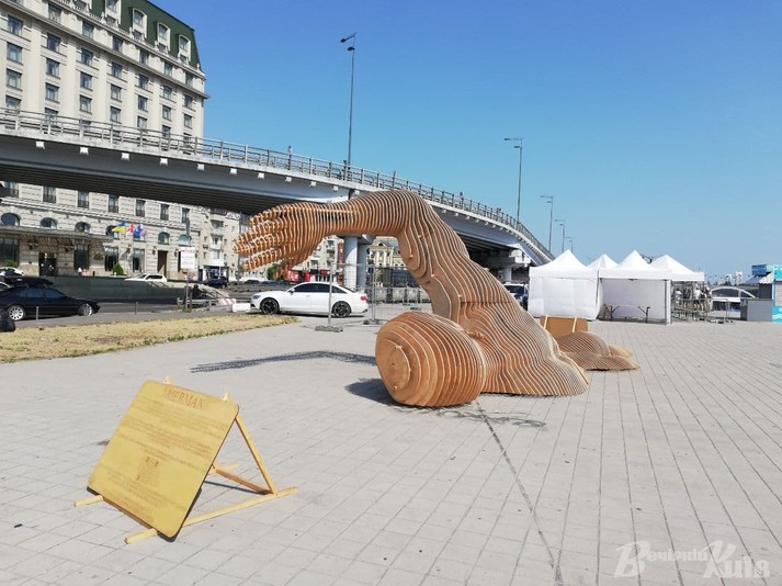 Інсталяція в рамках проєкту Merman, яка на початку липня була встановлена біля Арки дружби народів, знову переїхала на нову локацію. Тепер скульптуру помітили поблизу Річкового вокзалу та Поштової площі. Про це повідомляє «Вечірній Київ».