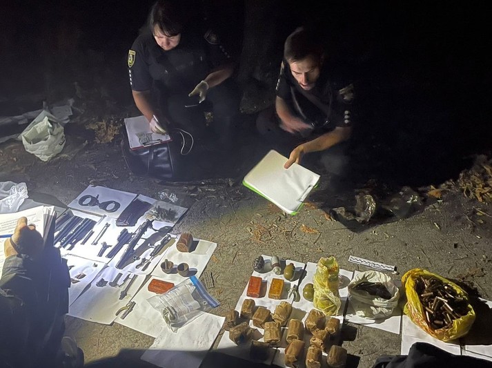 «Правоохоронці виявили гранату Ф-1, чотири гранати РГД-5, тротилові шашки, гранату «ВОГ» та два запали «УЗРГМ». У знахідці були також 988 набоїв різного калібру, магазин до АК-74 з набоями калібру 5,45 мм