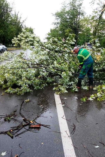 Працівники підприємств «Київзеленбуду» виїхали на місця падіння дерева для прибирання їх із проїжджих та пішохідних частин доріг.