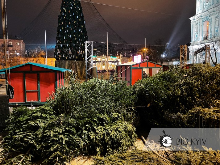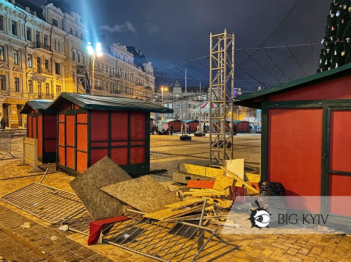 Територію навколо ялинки огородили, нікого не допускають, розбирають конструкції, знімають прикраси, пише Big Kyiv.