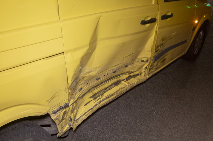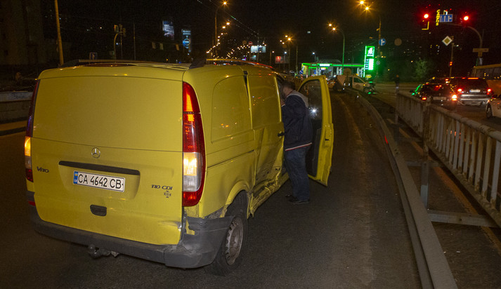 У автомобіля служби охорони зім'ята передня частина. Mercedes отримав вм'ятину з бічної пасажирської частини.