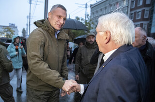 Говорили про варварів РФ. Кличко прогулявся зі Штайнмаєром під дощем (фото)