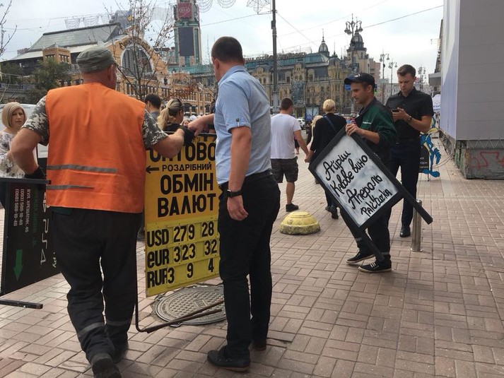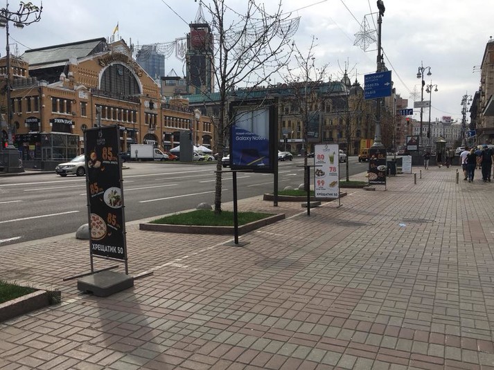 На центральній вулиці Києва комунальники демонтували рекламні штендери