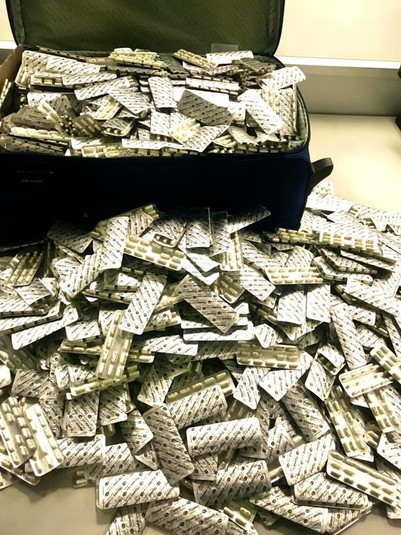«У двох дорожніх валізах 36-річного авіапасажира, який прямував через «зелений коридор», знаходилося 11 800 блістерів медичного препарату «Лірика» (прегабалін) торгового бренду Pfizer. Ліки... були спаковані без заводської упакування», – йдеться у повідомленні.