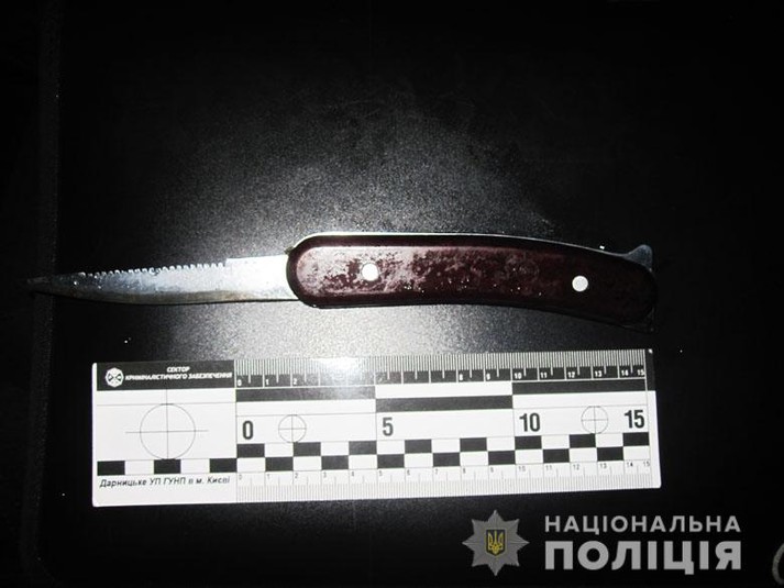 На місці події слідчо-оперативна група Дарницького управління поліції провела обшук підозрюваного та вилучила ніж, рукавички, захисну маску, а також гроші.