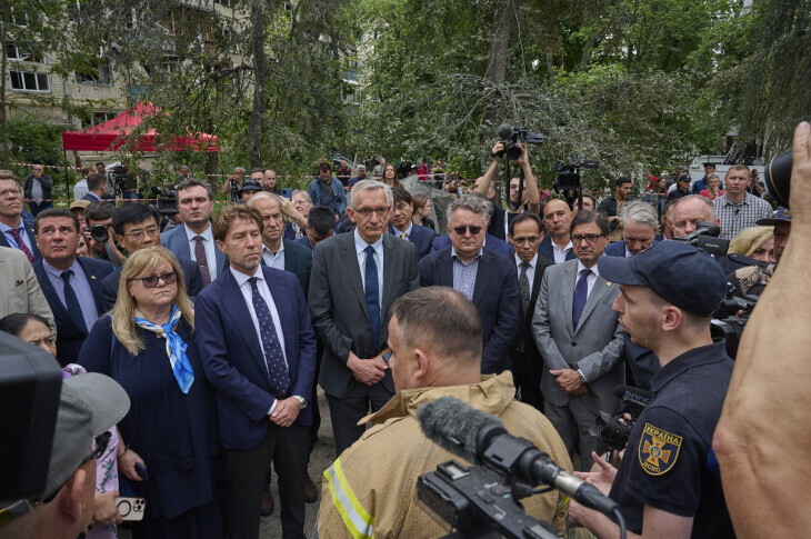Іноземні дипломати відвідали місце удару РФ по житловому будинку в Києві