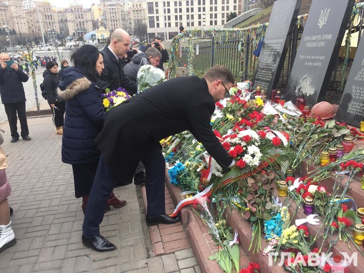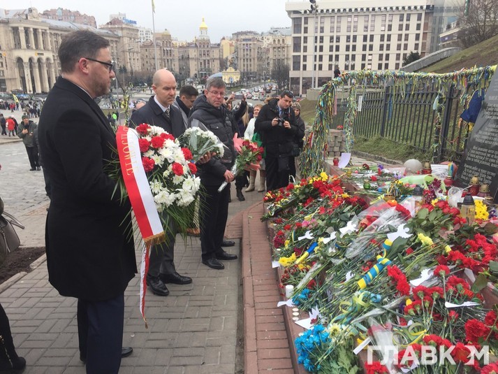 Сьогодні, 20 лютого, у шосту річницю розстрілів на Майдані дипломати країн Бухарестської дев'ятки (Польща, Болгарія, Чехія, Естонія, Литва, Латвія, Румунія, Словаччина, Угорщина) на Алеї Героїв Небесної сотні вшанували пам'ять загиблих під час розстрілів учасників Революції гідності.