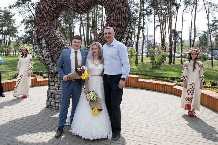 Міський голова привітав молодят, які сьогодні уклали шлюб та прийшли до інсталяції зробити весільне фото.