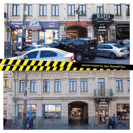 «Нарешті з чудових фасадів ХVIII-ХІХ століть знятий мотлох, і відтепер кожен охочий зможе подивитись на справжню перлину Подолу», - підкреслив він.