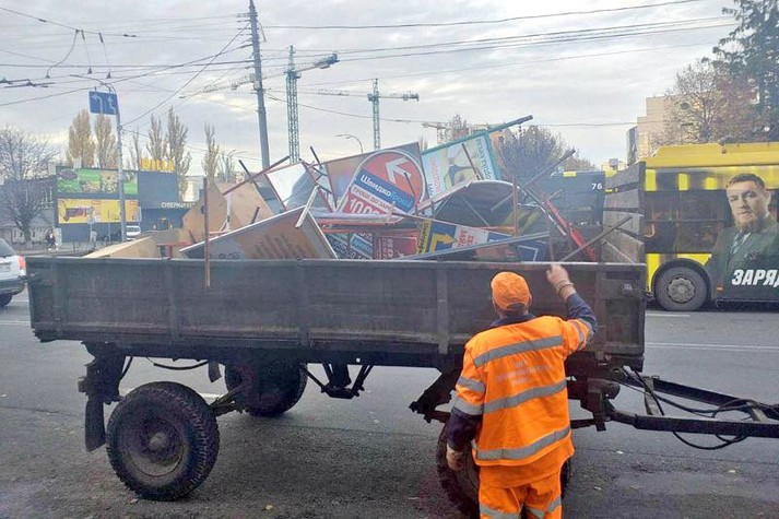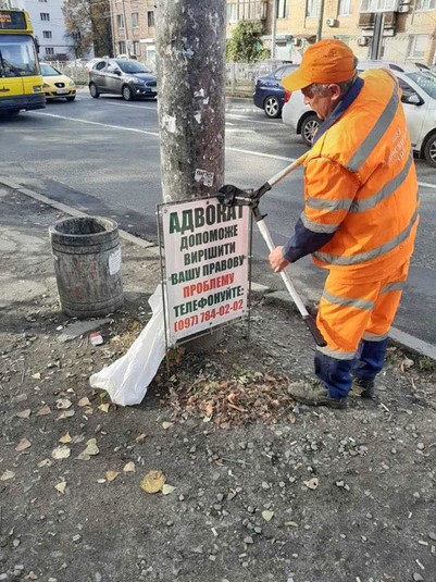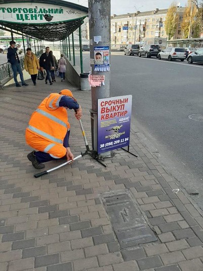 Вулиці Солом’янського району Києва очищають від незаконної реклами, яку встановлюють недобросовісні підприємці.