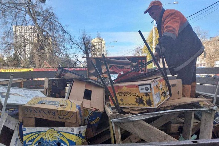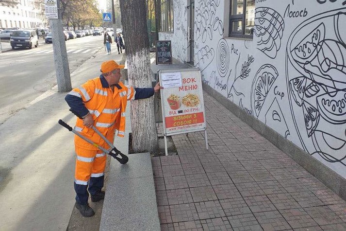 Із тротуарів у Києві комунальники прибрали десятки рекламних «спотикачів» (фото)
