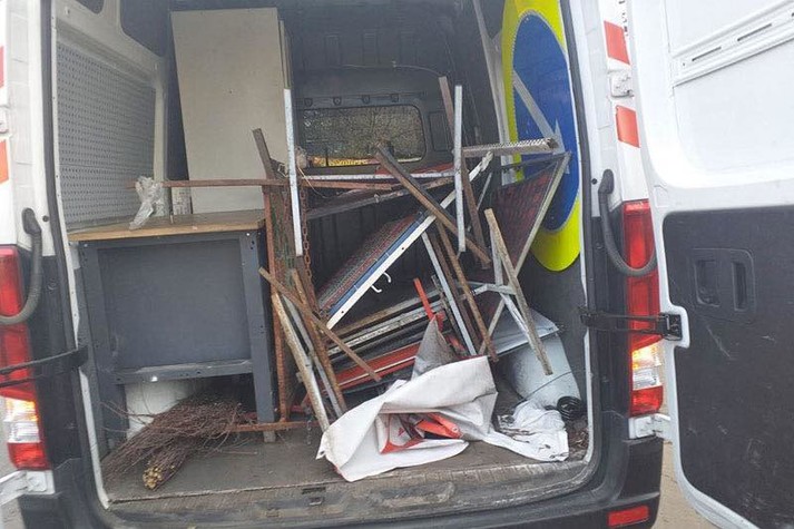 Було прибрано десятки незаконних конструкцій. Дозволів на розміщення таких металевих штендерів на тротуарах підприємці не отримують.
