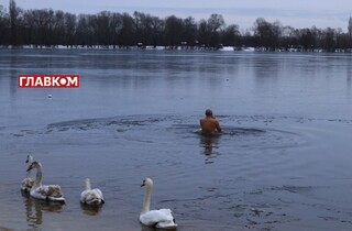 Попри застереження від влади, деякі кияни на Водохреще таки пішли купатися у водоймах. «Главком» публікує фото однієї з традиційних локацій на річці Дніпро.