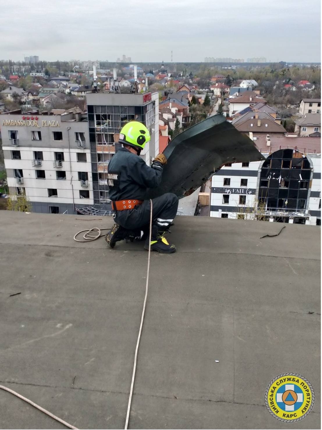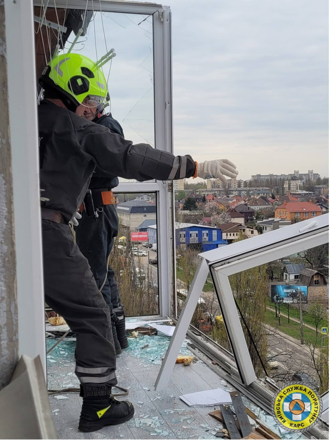 Обстріл Києва: рятувальники демонтують потрощені балкони та вікна постраждалих будинків