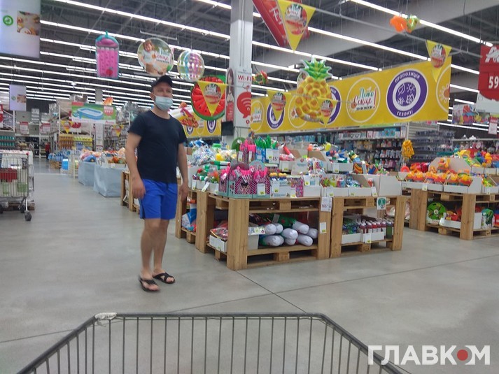Також в магазині багато відвідувачів з маскою під носом. Деякі відвідувачі заходять в гіпермаркет в масках, але потім їх знімають, або спускають під ніс.