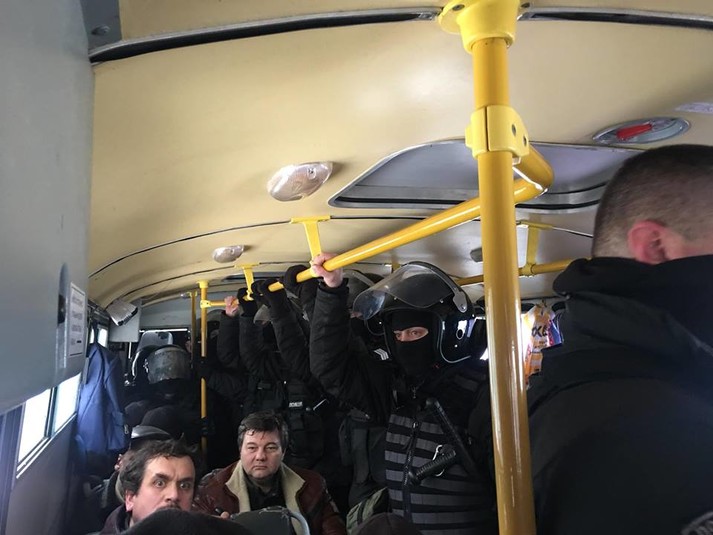 Пізніше Каплін виклав відео, як 10 членів СПУ і двох нардепів – його і Олександра Сугоняку - везуть силовики в РОВД.
