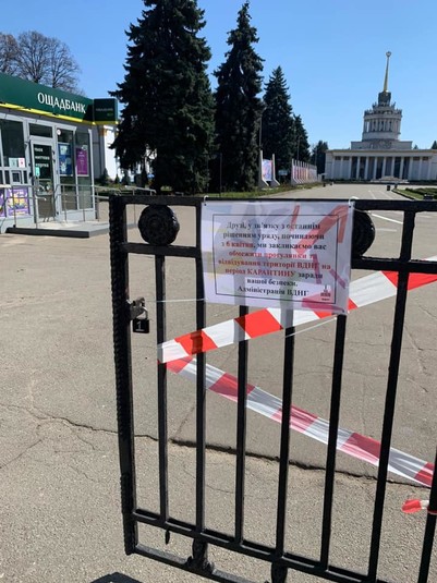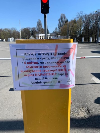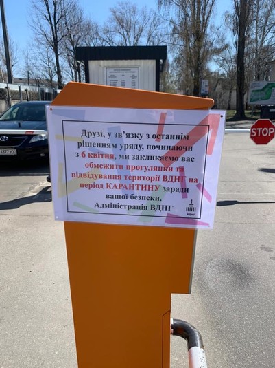 На всіх пропускних точках Експоцентру розміщені оголошення для відвідувачів із закликом обмежити прогулянки та відвідування території ВДНГ під час карантину.