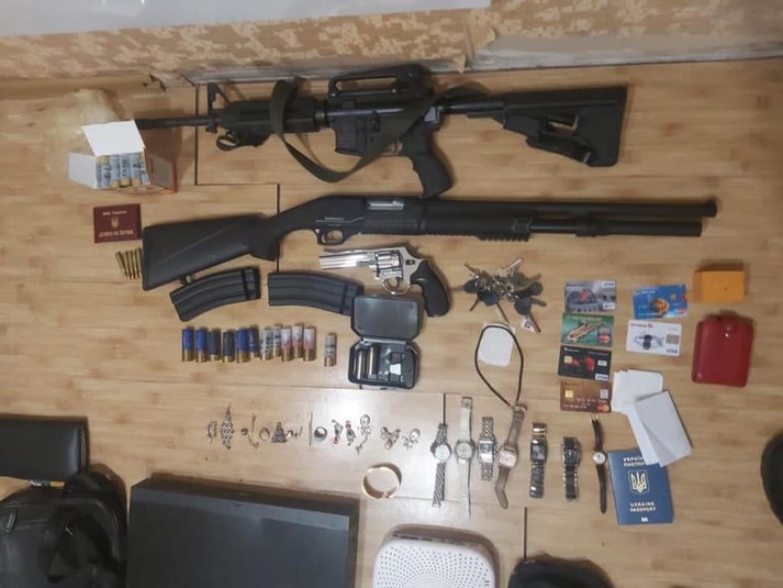 Правоохоронці провели за місцем проживання зловмисників санкціоновані обшуки та вилучили низку речових доказів, зокрема, речі, які належать потерпілим, балаклави, пристрої радіозв’язку, пістолети, рушниці та набої різного калібру. Крім того, правоохоронці вилучили наркотичні речовини. Також поліцейські вилучили мікроавтобус марки Мercedes, яким пересувались зловмисники.