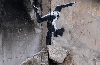 Бенксі зобразив графіті на стіні одного із практично повністю зруйнованих військами РФ багатоповерхових будинків.
