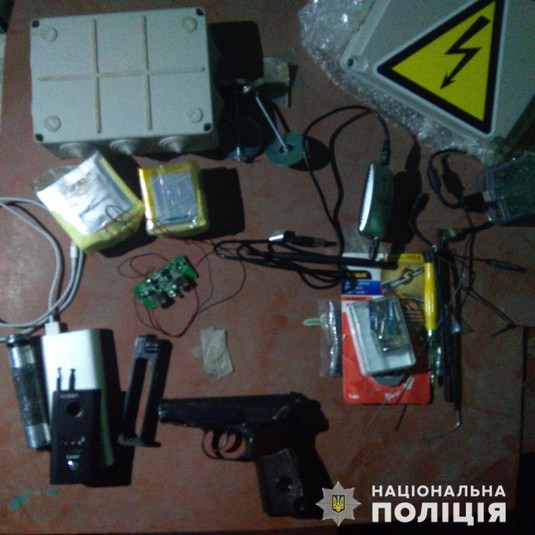 На місце події виїхала слідчо-оперативна група столичної поліції та працівники кіберполіції. У зловмисника вилучено ноутбук, спеціалізоване обладнання для віддаленого доступу, пістолет ПМФ-1, а також пристрій для виявлення прихованих камер та жучків.