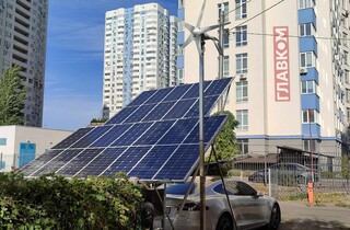Бажання українців зекономити на комуналці іноді трансформується у без малого геніальні ідеї. Одну з таких можна побачити у столичному дворі багатоповерхівки на Позняках, де власник Tesla Model S облаштував зарядну станцію з використанням альтернативної енергії, розповідає «Главком».