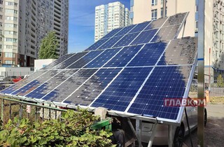 На кадрах можна побачити автомобіль під навісом з сонячних панелей. Окрім сонячної енергії винахідливий киянин отримує і кінетичну, про що свідчить вітряк над панелями.