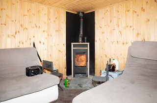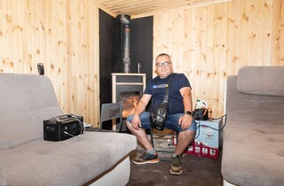 Для тепла встановив камін. Він безпечний, це сучасний закритий камін зі скляними дверцятами. Вентиляція зроблена як належить, йде двома шляхами: чисте повітря надходить одним, а іншим – виводяться продукти згоряння. Є запас питної води і маленький біотуалет, що комфортно, коли люди знаходяться у бункері протягом тривалого часу.