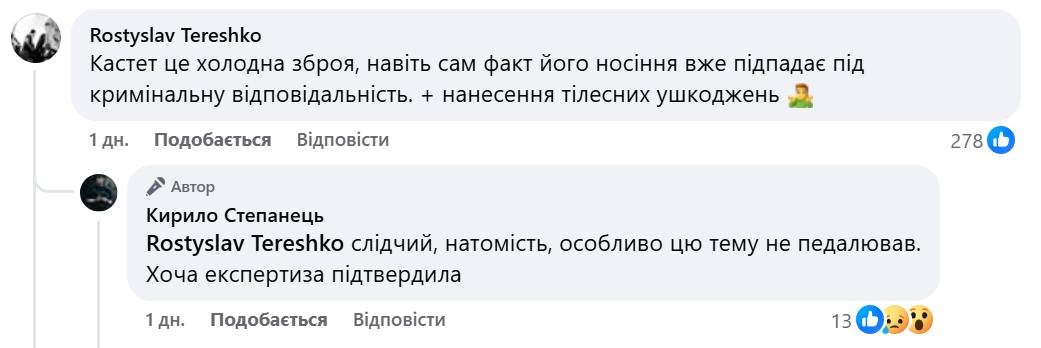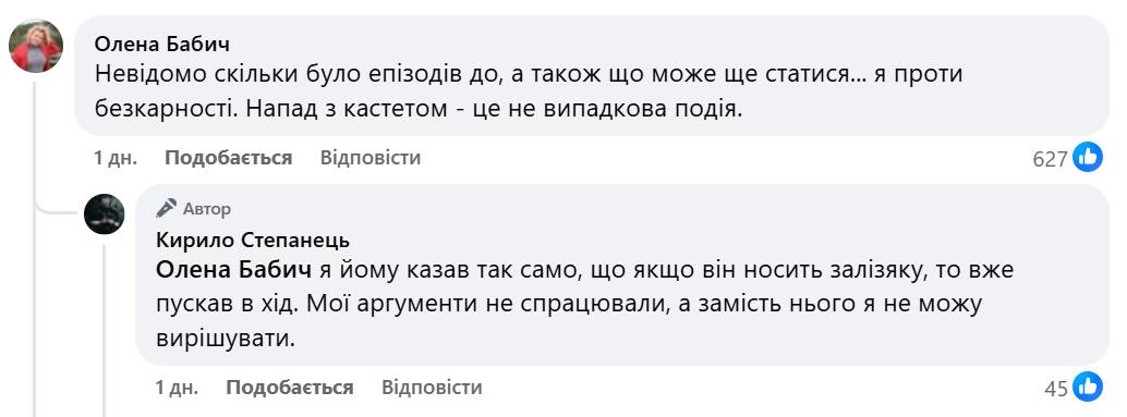 Водночас Степанець зазначив, що нападник тепер перебуває на особливому контролі в поліції, і висловив сподівання, що цей інцидент стане для хлопця серйозним уроком на все життя. Блогер також подякував журналістам та громаді за розголос, який допоміг «підняти на вуха місто» та швидко знайти зловмисника.