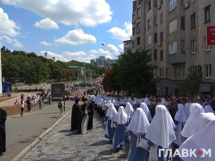 Урочистий молебень відбувся на Володимирській гірці, а хресний хід пройде за маршрутом: Володимирська гірка – вулиця Трьохсвятительська – Європейська площа – вулиця Грушевського – вулиця Мазепи – вулиця Лаврська.