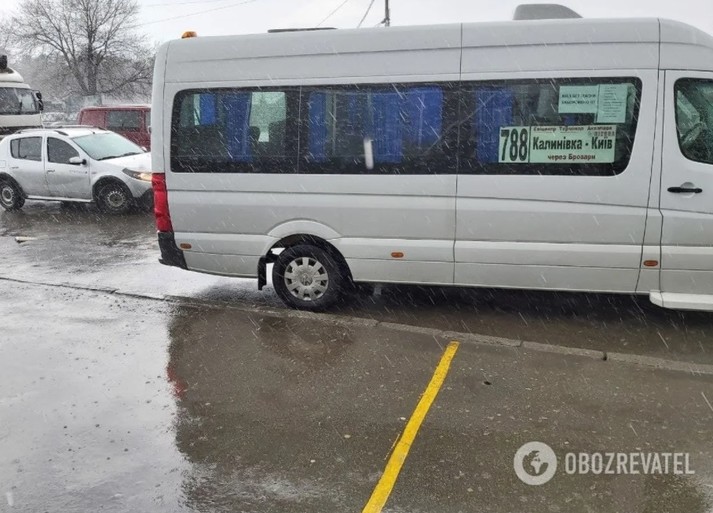Біля станції метро «Лісова» утворилися величезні калюжі, що ускладнювало рух транспорту.
