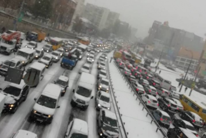 У Києві у вівторок, 17 листопада, випав сніг і на столичних дорогах утворилися значні затори. Про це свідчать дані Google Maps.