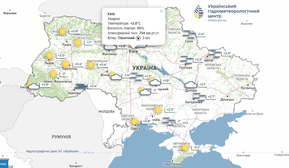 - Температура повітря: +2.8°C;