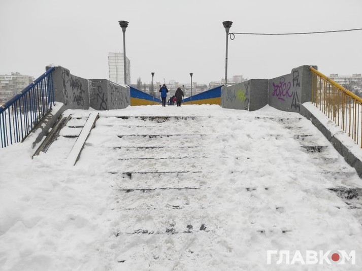 Станом на ранок 9 лютого тротуари та сходи не кругом були очищені від снігу.